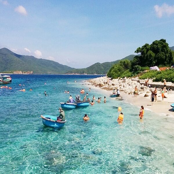Tiếp tục hành trình, đoàn tới tham quan Hòn Mun: Hòn Mun là một trong những hòn đảo thơ mộng nhất Nha Trang. Nếu bạn đang tìm kiếm một không gian yên bình. Một nơi với dải bờ biển đầy ắp cát trắng như pha lê, nước trong xanh và biển hiền hòa thì chắc chắn bạn nên đến Hòn Mun. Đến hòn đảo nhỏ này bạn còn có thể tha hồ lặn biển, ngắm san hô, bơi lội và thưởng thức những món hải sản tươi ngon nhất nơi này…